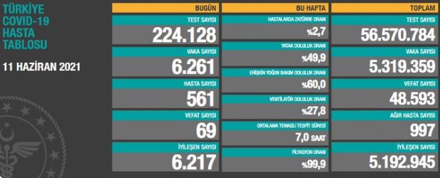 11 Haziran 2021 koronavirüs tablosu açıklandı