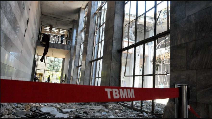 Buraya atılan bombalarla 44 özel harekat polisimiz şehit düştü. Türkiye Cumhuriyeti'ne ve demokrasisine savaş açan darbeciler, o karanlık gece millete ait olan savaş uçakları, helikopterler ve tanklarla daha önce görülmemiş bir şekilde kendi halkına kurşun yağdırdı.