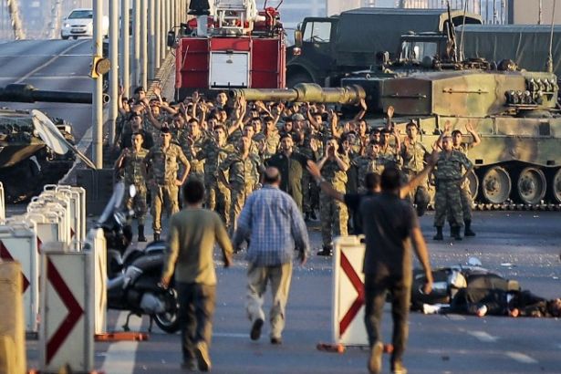 Kanlı gecenin ilk işareti, 15 Temmuz gecesi saat 22.00 sularında adı 15 Temmuz Şehitler Köprüsü olarak değiştirilen Boğaziçi Köprüsü'nün Anadolu'dan Avrupa'ya geçişinin kapatılmasıyla verildi. Kalkışma olduğu izlenimi üzerine milyonlarca vatandaş teyakkuza geçti.