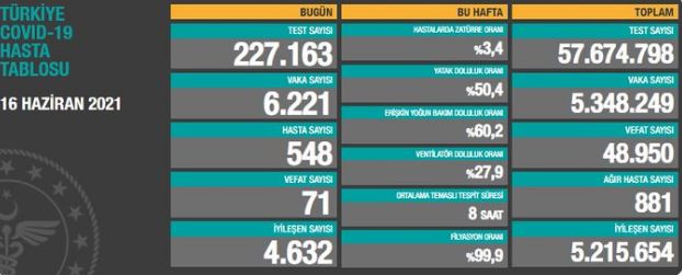 16 Haziran 2021 koronavirüs tablosu açıklandı