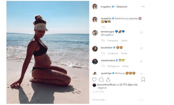 6 aylık hamile olan oyuncu Müge Boz bikinisi ile poz verdi. Kumsalda çekilen fotoğrafını paylaşan güzel oyuncu instagramda olay oldu.