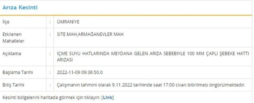 9 Kasım 2022 İSKİ su kesintisi listesi
