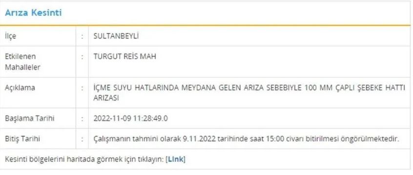 İSKİ tarafından yayımlanan 9 Kasım arıza-kesinti listesiyle birlikte, İstanbul'un 4 ilçesinde su kesintisi yaşanacağı duyuruldu.