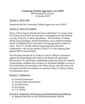 Tasarıda ABD'nin "Suriye'deki Kürtleri desteklemeye devam etmesi" istenirken, tasarıda çok sayıda mali yaptırım bulunuyor.