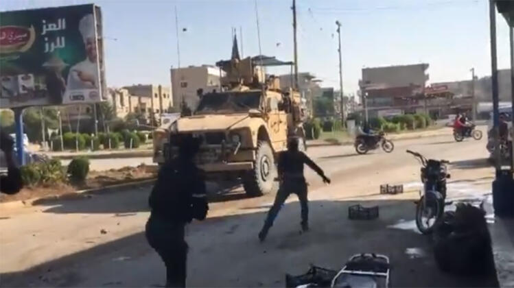 Gündüz kaydedilen bir başka görüntü ise, inanılmaz sahneleri dünyaya gösterdi. Kamışlı'yı terk eden Amerikan askerlerinin YPG taraftarlarınca taşlandığı görüldü.