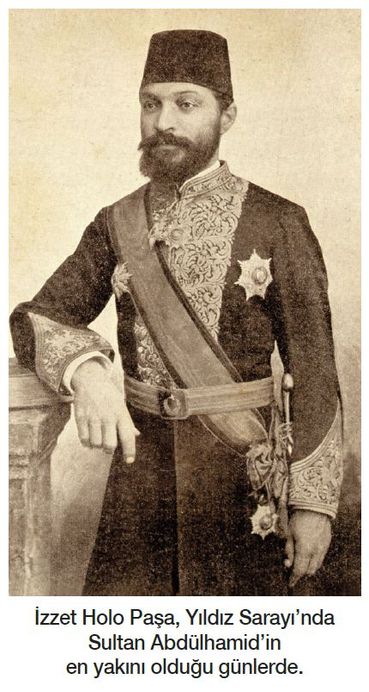 Orta Asyalılıktan Araplığa, Kürtlükten Çerkesliğe ve Türklüğe kadar imparatorluğun hemen her unsurunun genlerini taşıyan ve tarihlere “Arap İzzet” diye geçen İzzet Holo Paşa, 1852’de Şam’da doğdu. Çok iyi tahsil gördü, bir Fransız okulunu bitirdikten sonra Hukuk okudu, 1890’larda Abdülhamid tarafından Yıldız Sarayı’na alındı ve zamanla hükümdarın en güvendiği adamı oldu. Padişahın dış dünya ile temasının sağlanması, memlekette olup bitenler hakkında haberdar edilmesi ve devlet birimleri arasındaki koordinasyon gibi işlerin yanısıra hükümdarın bütün gizli temaslarını da senelerce o yürüttü.