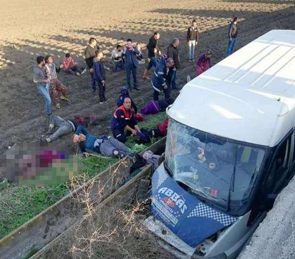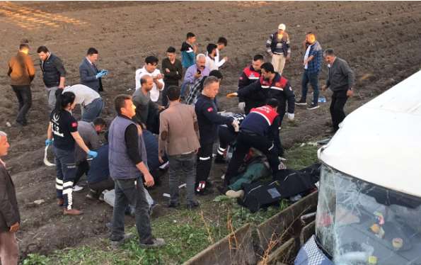 Adana’da tarım işçilerini taşıyan servis şarampole devrildi. Kazada 3 kişi yaşamını yitirdi, 14 kişi yaralandı. Kazayla ilgili soruşturma başlatıldı.