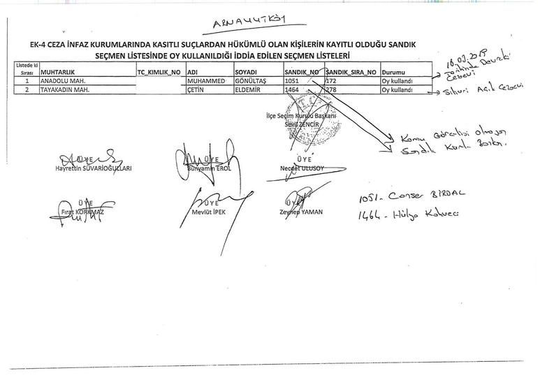 İşte kamu görevlisi dışından atanan başkanın bulunduğu sandıkta 2 hükümlünün oy kullanma belgesi: