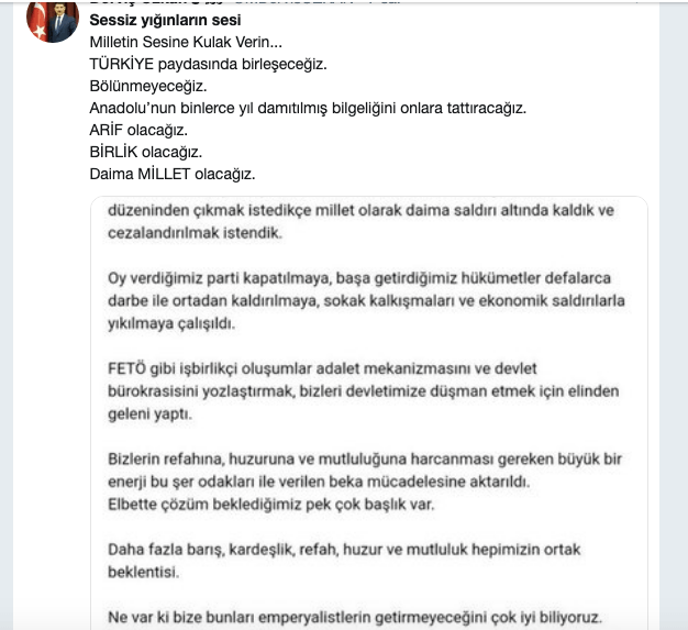 "Sessiz yığınların sesi" imzalı mesaj kısa sürede sosyal medyada büyük beğeni ve paylaşım rekorları kırdı.