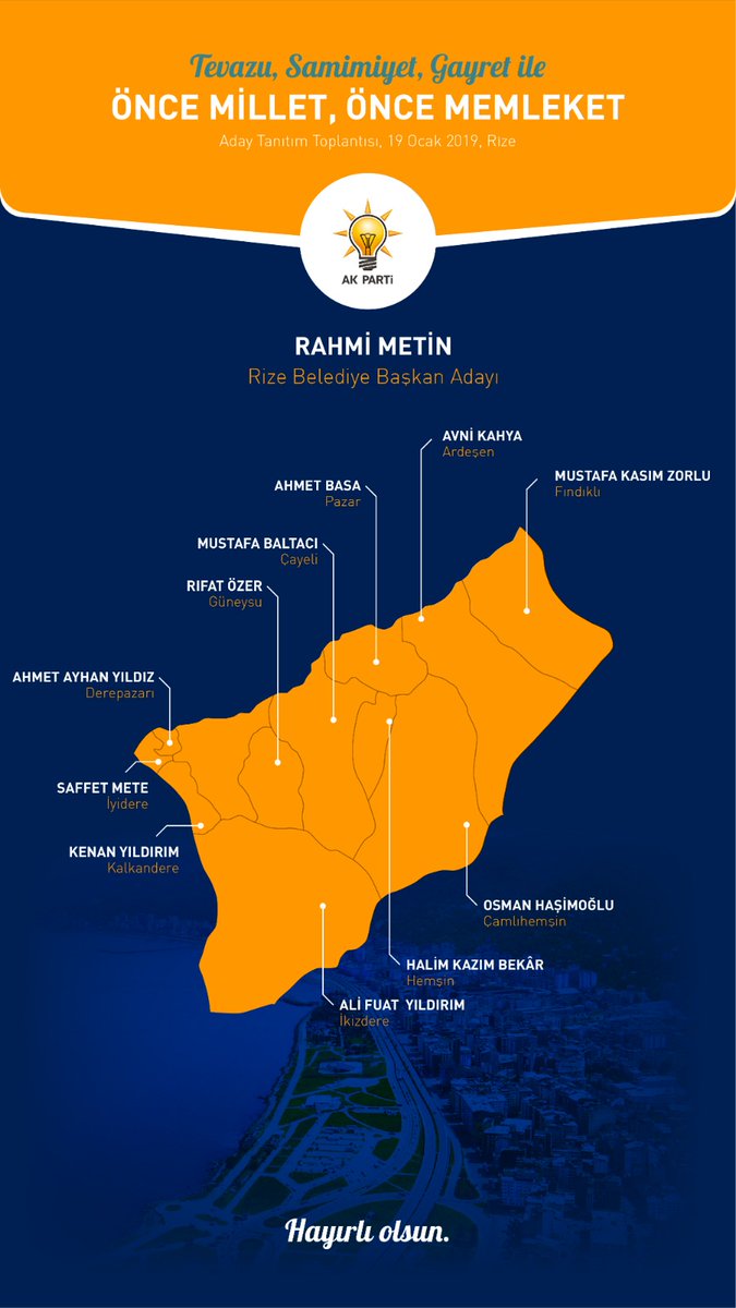 İşte Rize İlçe ve Belde Belediye Başkan adayları: