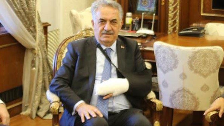 Son dakika gelişmesine göre; Hayati Yazıcı aniden önüne çıkan otomobile çarpmamak için şoförünün sert fren yaptığı makam aracında, elinden yaralandı ve büyük bir faciadan döndü.