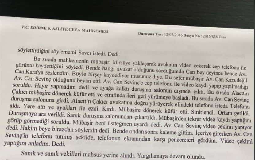 Çakıcı'nın yediği dayak sonrasında avukatı Can Sevinç, "Alaattin Beyin çok net bir biçimde Adalet Bakanı'na, Cumhurbaşkanı'na, Başbakan'a, Cezaevleri Genel Müdürüne; kim bu kumpası ayarladıysa hepsine karşı çok ağır sözleri olmuştur" demişti.