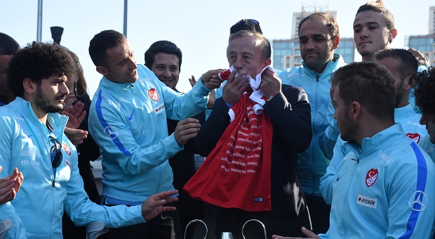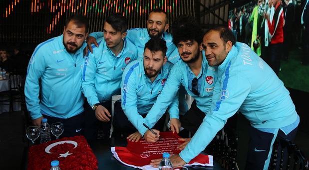 Basın toplantısı sonrası Türkiye Ampute Milli Takım oyuncuları imzaladıkları formayı Ali Ağaoğlu’na hediye etti. Bu hediye karşısında duygulanan Ali Ağaoğlu; “Bugüne kadar ki aldığım en güzel hediye. Üzerinde imzanız bulunan ay yıldızlı milli takım formasının benim için önemi ve anlamı çok büyük” dedi. Formayı kaptan Osman Çakmak’ın elinden alan Ali Ağaoğlu milli formayı öptü.