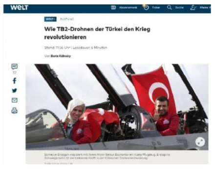 Bayraktar TB2 SİHA’larının mimarı Selçuk Bayraktar’ın Türkiye’de milli kahraman haline geldiğini belirten Die Welt, 41 yaşındaki Bayraktar’ın ABD’de Massachusetts Teknoloji Enstitüsü’nde (MIT) okuduğunu ve 2005'te Türkiye’ye gelerek Bayraktar Mini İHA’yı Türk subaylarına tanıttığını kaydetti. Alman gazetesi, o dönem askerlerin şüpheyle yaklaşmasına rağmen 2000’li yılların başında bu alanda çalışmaya başlayan Baykar’ın on yıl sonra çok daha büyük, silahlı ve yüksek teknoloji ürünü Bayraktar TB2 SİHA’yı geliştirdiğini vurguladı.