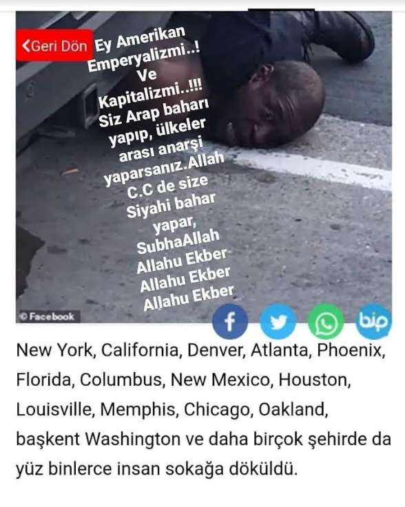 Amerika’da olaylar durulmuyor. Amiralin ordusunu ilk defa Amerika da görüyoruz. Küresel terörizmin babası, İsrail'in hamisi, emperyalizmin ve Siyonizmin jandarması ABD'de Trump karşıtı gösteriler çok sayıda eyalete yayıldı. Göstericilere karşı çok sert müdahale de bulunuldu. Özgürlük, demokratik haklar ve insan haklarına uyulmadı. Uluslararası medya ve insan hakları savunucuları bunları görmezden geldi.