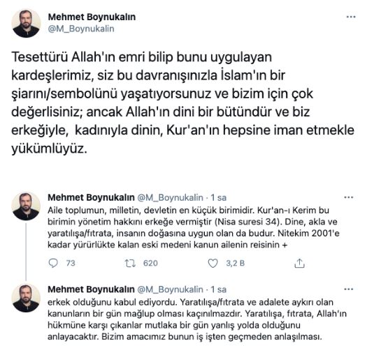 Ayasofya baş imamı Mehmet Boynukalın’ın 8 Mart Dünya Emekçi Kadınlar Günü’nde Twitter hesabından yaptığı paylaşım ile sosyal medyada dikkat çekti.
