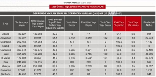 Çevre, Şehircilik ve İklim Değişikliği Bakanı Murat Kurum, '1999 öncesi yapılan, mühendislik hizmeti almamış, denetime tabi olmamış yapıların yüzde 98'inin yıkıldığını görüyoruz' dedi.
