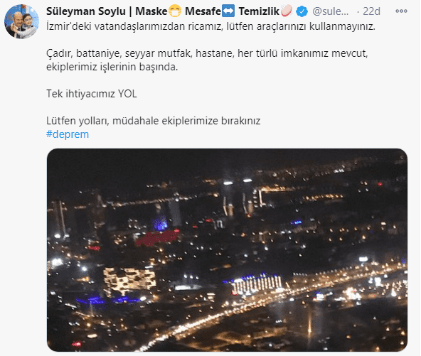 İzmir'deki vatandaşlarımızdan ricamız, lütfen araçlarınızı kullanmayınız.