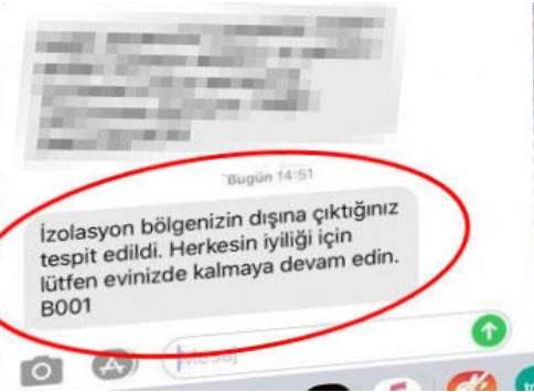 Koronavirüs riski nedeniyle evde izolasyon altında bulunması gereken kişiler evlerini terk ederse, telefonlarına uyarı mesajı gelecek.