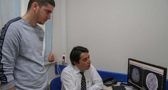 Dokuz Eylül Üniversitesi Hastanesi Beyin ve Sinir Cerrahisi Bölümünde görevli Doç. Dr. Hülagü Kaptan, yapılan tetkikler sonrasında beynin en değerli yeri olarak nitelendirilen sol tarafında 5x5 santimetre büyüklüğünde tümör tespit ettiklerini, operasyonun risklerini hastayla paylaştıktan sonra 6 kişilik bir ekiple ameliyatı gerçekleştirdiklerini söyledi.