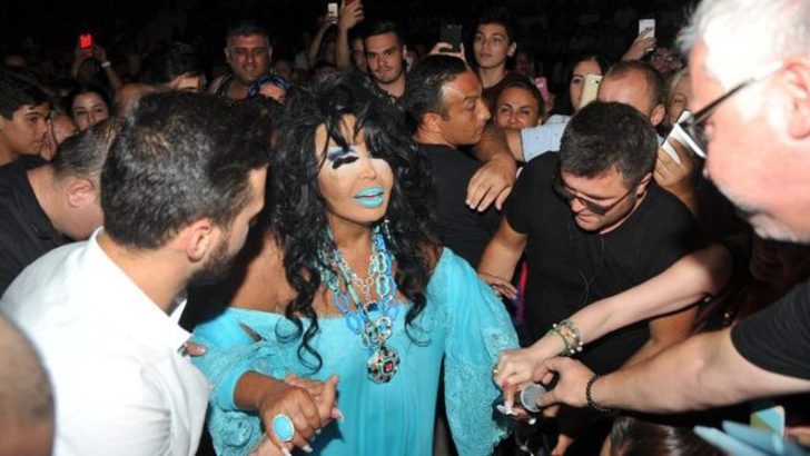 Çeşme Açıkhava Tiyatrosu'nda seyircilerin isteği üzerine sahneden inen Bülent Ersoy’un elbisesini paramparça ettiler.