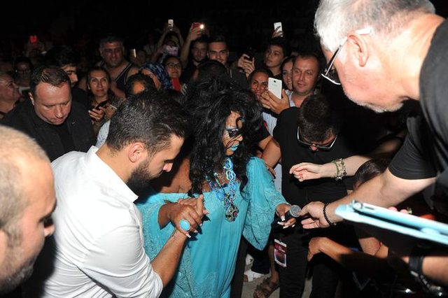 Bülent Ersoy konser maratonuna Çeşme Açıkhava Tiyatrosu'nda devam ediyor. Seyircilerin yoğun isteği üzerine sahneden halkın arasına inen Bülent Ersoy, izdihamın ortasında kaldı.
