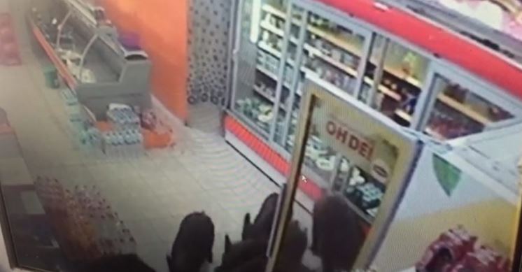 Domuzların markette dolaştığı anlar, iş yerinin güvenlik kameralarına yansıdı.
