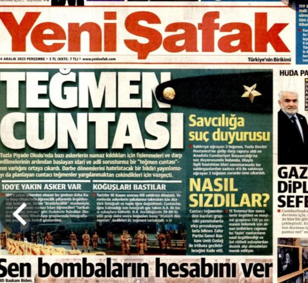 Okulda bazı askerlerin namaz kıldıkları için fişlendiklerini ve darbedildiklerini iddia eden Yeni Şafak, bir “teğmen cuntasının” varlığını ileri sürdü.