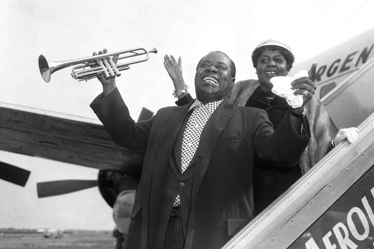 Louis Armstrong, eşi Lucille Wilson ile uçaktan inerken
