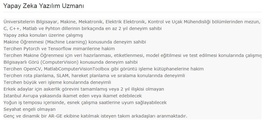 İşte Yapay Zeka Yazılım Uzmanı için başvuru şartları: