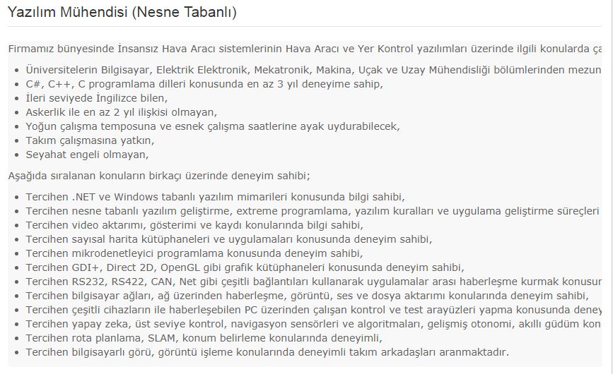 İşte Yazılım Mühendisi için başvuru şartları: