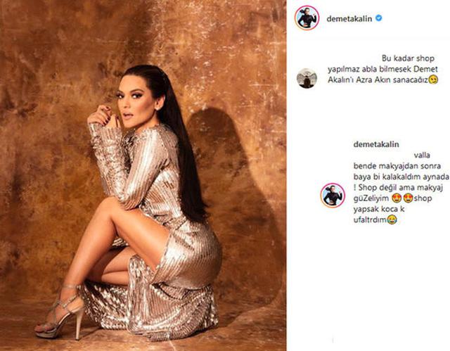 Instagram hesabından fotoğraflarını paylaşan Demet Akalın’a, bir sosyal medya kullanıcısı, “O kadar Photoshop yapmışsın ki bilmesek Azra Akın diyeceğiz” şeklinde yorum yaptı.