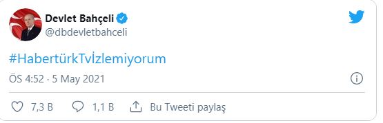 Bu yaşananların ardından MHP Genel Başkanı Devlet Bahçeli, kişisel Twitter hesabında paylaşımda bulundu. Bahçeli, "Habertürk TV izlemiyorum" dedi.