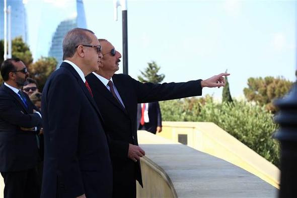 Haydar Aliyevin mezarını ziyaret ettikten sona Erdoğan ve Aliyev, önce Türk Şehitliğini ve sonrasında Azerbaycan Şehitliğini ziyaret ederek çelenk bıraktılar.