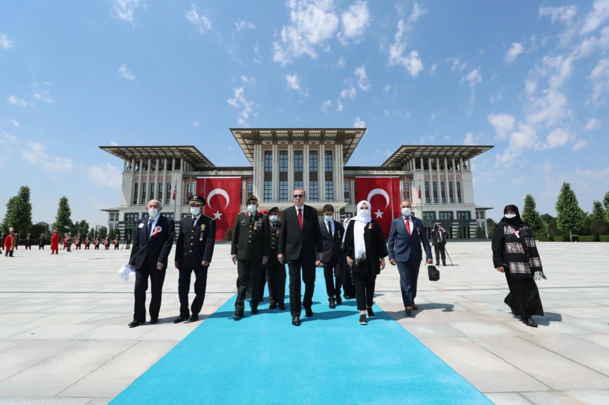 Erdoğan'a bazı komutanlar ve siyasetçilerin yanı sıra 15 Temmuz gazileri eşlik etti. Erdoğan, çelenk bırakıp dua ettikten sonra bir açıklama yapmadan alandan ayrıldı. Cumhurbaşkanı Erdoğan'a gaziler ile birlikte 1. Sınıf Emniyet Müdürü Gazi Turgut Aslan da eşlik etti.