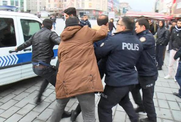 Meydandaki polisler tarafından gözaltına alınan şüphelinin üzerinden bir adet silah şarjörü çıktığı öğrenilirken, polis her yerde silahı arıyor.