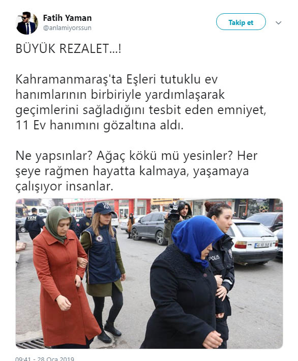 'BÜYÜK REZALET...! Kahramanmaraş'ta Eşleri tutuklu ev hanımlarının birbiriyle yardımlaşarak geçimlerini sağladığını tes(p)it eden emniyet, 11 Ev hanımını gözaltına aldı. Ne yapsınlar? Ağaç kökü mü yesinler? Her şeye rağmen hayatta kalmaya, yaşamaya çalışıyor insanlar.'