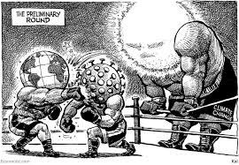 The Economist dergisi bunu yayınladı ama sonrada birden bire kaldırdı siteden ilginç demi? ‘’The preliminary round’’ çevirisi ‘’ilk tur’’ demek. Dikkat ederseniz, Resimde dünya virüsü dövüyor.