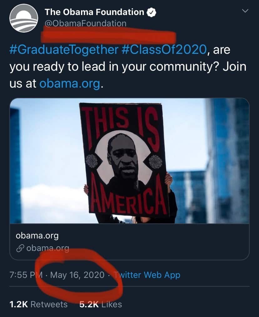 Filmde bunu eklemelerinin sebebi bugünkü olayların şifresini vermişler… ince ince, ilmik ilmik işleyerek. Obamanın 16 Mayısta attığı tweet’e bakalım hani Floyd 25 mayısta ölmüştü?