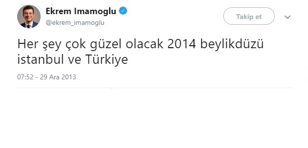 CHP İstanbul aday Ekrem İmmaoğlu'nun FETÖ'cü Emre Uslu'nun bir çok kez kullandığı sözü 2014 yerel seçimlerinde Beylikdüzü Belediye Başkan adaylığı sırasında kullandığı ortaya çıktı. Hakkında kripro FETÖ'cü olduğu iddia edilen İmamoğlu bakın FETÖ'cü Uslu'yla aynı tarihlerde paylaşımında, "Her şey çok güzel olacak, 2014 Beylikdüzü, İstanbul ve Türkiye."