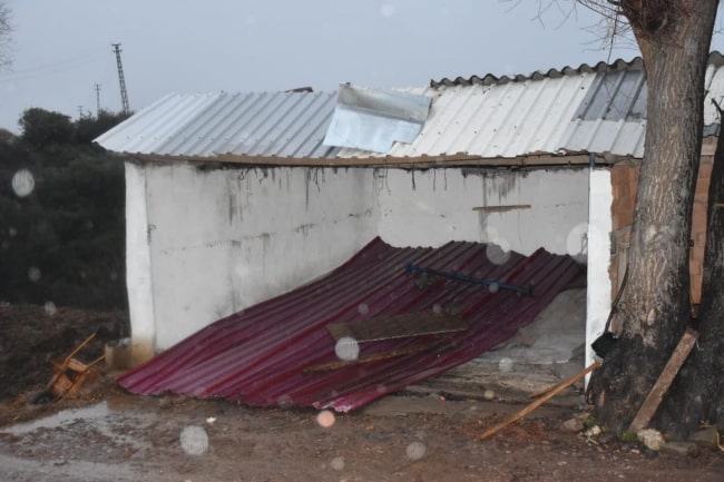 Yeni Mahalle'de yağışın ardından şiddetli rüzgar bazı elektrik direkleri ve ağaçların devrilmesine, bir evin çatısının zarar görmesine neden oldu.