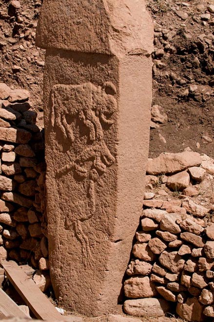 Boğa, tilki ve vincin olduğuna inanılanın alçak kabartmalarıyla, Ek A'dan (Kat III) Direk 2. Gobekli Tepe, Urfa. ( CC BY-SA 3.0 )