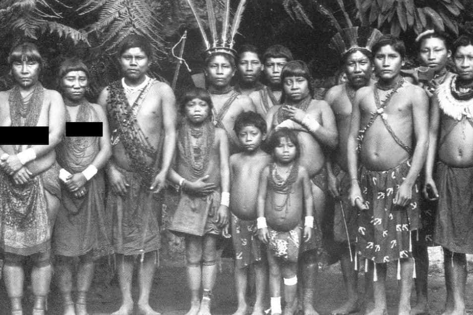 Surinam'dan Paris'e getirilen yerlilerden bir grup yöneticileriyle
