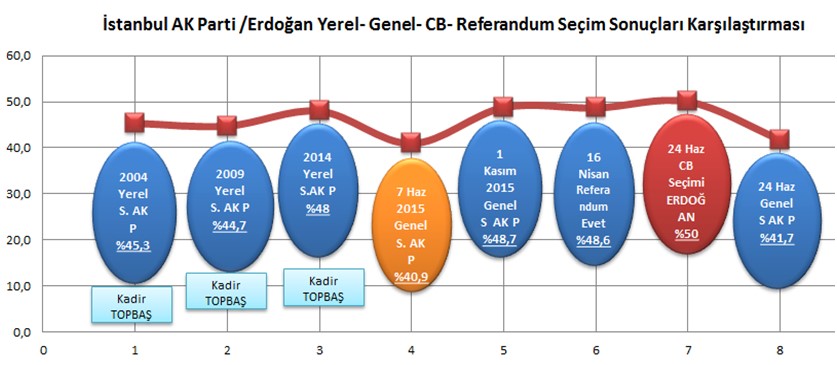 İstanbul, hem Türkiye seçmeninin önemli bir çoğunluğunu barındırdığı ve aynı zamanda, ülkeyi temsil edecek düzeyde, her sosyo kültürel ve ekonomik yapıdan insanın yaşadığı bir il olduğu için, buradaki sonuçlar, Türkiye genelindeki sonuçlarla yakın bağlantılar oluşturuyor.