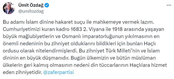 ZAFER PARTİSİ LİDERİ ÖZDAĞ'DAN TEPKİ