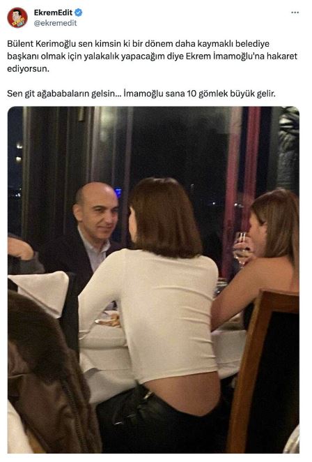 "Bülent Kerimoğlu sen kimsin ki bir dönem daha kaymaklı belediye başkanı olmak için yalakalık yapacağım diye Ekrem İmamoğlu’na hakaret ediyorsun. Sen git ağababaların gelsin… İmamoğlu sana 10 gömlek büyük gelir."