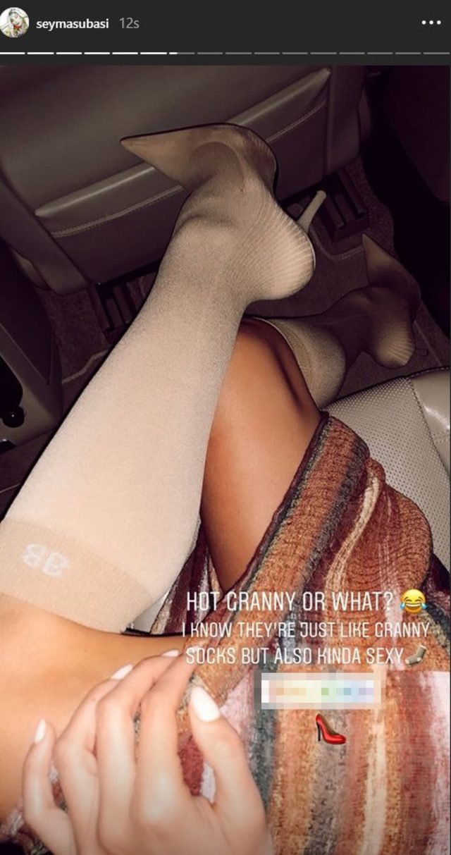 Dizlerine kadar gelen markalı çorabının fotoğrafını çeken Subaşı, bu karenin üzerine; “Ateşli bir büyükanne değilse nedir? Gerçekten de büyükanne çorabı gibi göründüklerini biliyorum ama aynı zamanda seksi…” notunu düştü.