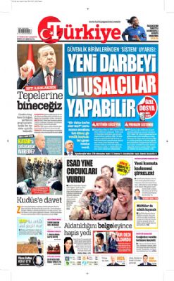 Gazete, bugün "Yeni darbeyi ulusalcılar yapabilir" manşetiyle çıktı. Daha önce Fethullahçılara verdiği destekle bilinen Türkiye gazetesinin CEO'su Cahit Paksoy, FETÖ soruşturmalarında tutuklanıp serbest kalmıştı. Gülen'in son dönemde kendi üzerindeki soruşturmaları Atatürkçü kesime yıkma çabasına bugünkü manşetiyle destek veren gazetenin tezini, daha önce Fethullahçılarla ilişkileriyle bilinen Nagehan Alçı, Rasim Ozan Kütahyalı, Cem Küçük gibi isimler de işlemiş ve söz konusu isimlere Fethullahçılar destek vermişti.