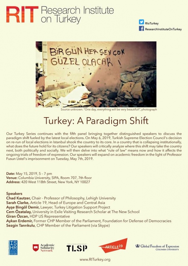 Gezi kalkışmasının destekçilerinden New York merkezli Türkiye Araştırmaları Enstitüsü, CHP İstanbul adayı Ekrem İmamoğlu adına bir panel düzenledi. Panelde HDP’nin ABD temsilcisi Giran Özcan, FETÖ firarisi eski CHP milletvekili Aykan Erdemir birlikte konuşma yaptı. Yine CHP milletvekili Sezgin Tanrıkulu da panele Skype ile bağlanarak son gelişmeleri aktardı.