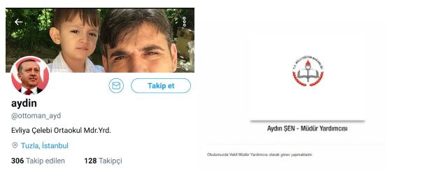 Twitter’daki hesap tanıtımında, İstanbul Tuzla Evliya Çelebi Ortaokul Müdür Yardımcısı yazan “aydin” isimli kullanıcı, Muharrem İnce’nin mitingine katılanları tehdit etti. Okulun kadrosuna bakıldığında, Müdür Yardımcısı olarak görev yapan Aydın Şen isimli biri yer alıyor.